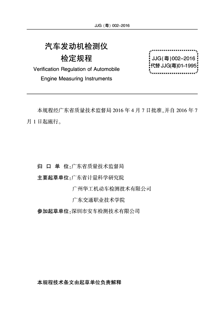 广东省计量科学研究院、广州华工机动车检测技术有限公司、广东交通职业技术学院、深圳市安车检测技术有限公司