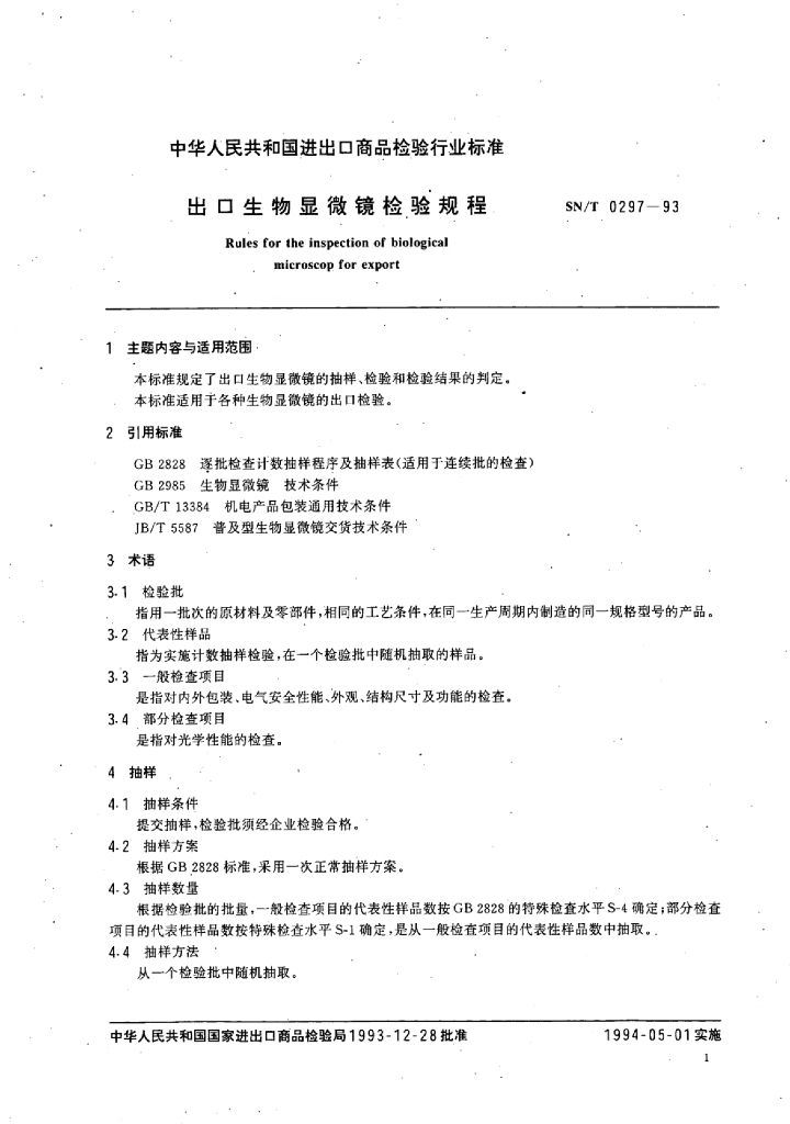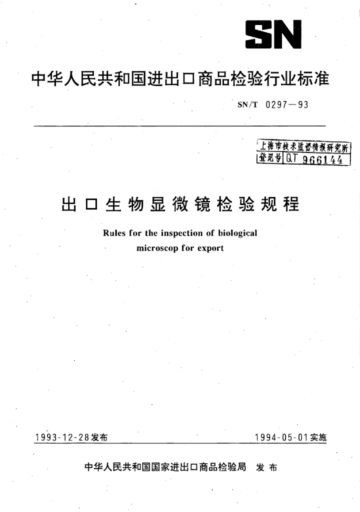SN/T 0297-1993 出口生物显微镜检验规程