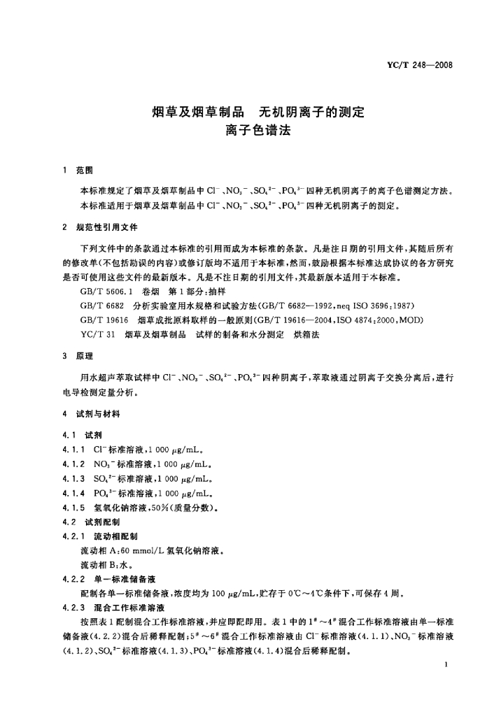 YC/T 248-2008 烟草及烟草制品无机阴离子的测定 离子色谱法