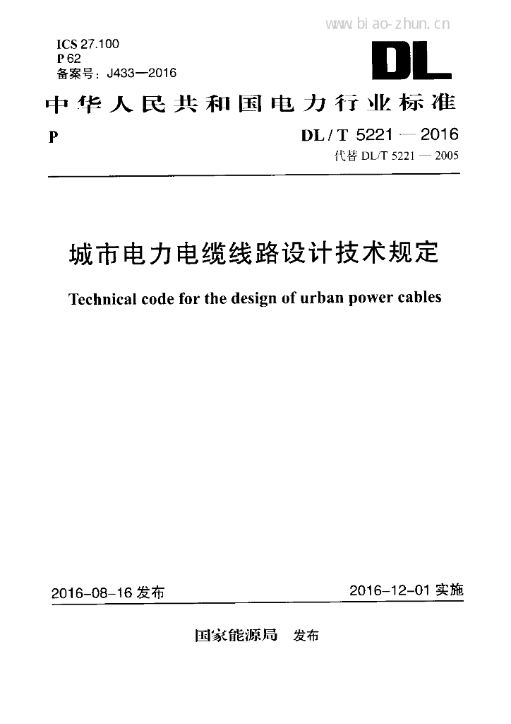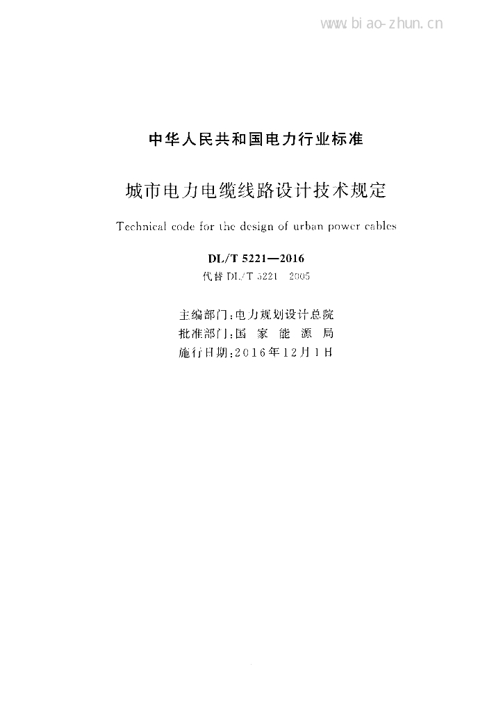 DL/T 5221-2016 城市电力电缆线路设计技术规定
