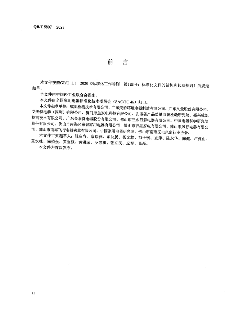 威凯检测技术有限公司、广东美的环境电器制造有限公司、广东久量股份有限公司、艾美特电器(深圳)有限公司、厦门弗兰家电科技有限公司、安徽省产品质量监督检验研究院、嘉兴威凯检测技术有限公司、广东金莱特电器股份有限公司、佛山市三水日彩电器有限公司、中国电器科学研究院股份有限公司、佛山市南海区东晋家用电器有限公司、佛山市吉星家电有限公司、佛山市风行电器有限公司、佛山市南海飞行电器实业有限公司、中国家用电器研究院、佛山市南海区电风扇行业协会