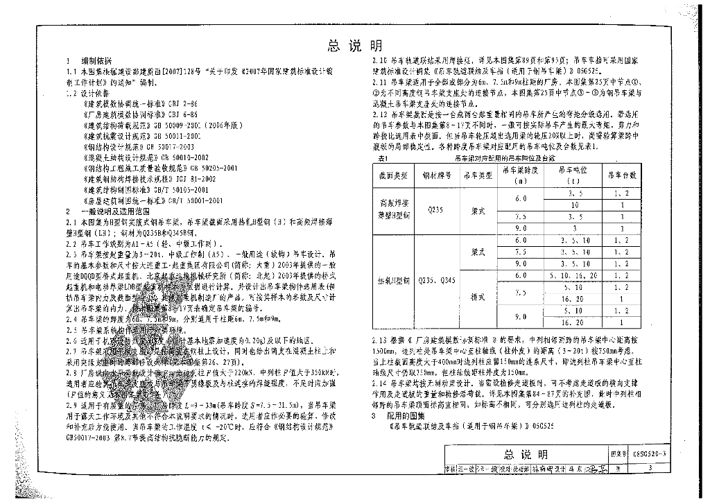 08SG520-3 钢吊车梁(H型钢工作级别A1~A5)图集
