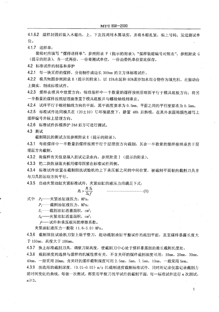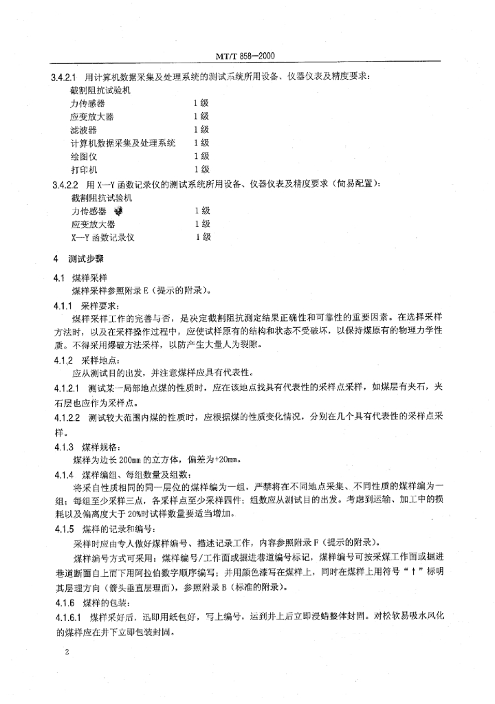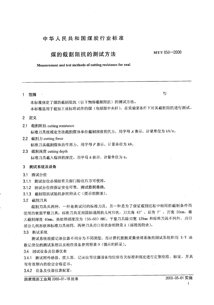 MT/T 858-2000 煤的截割阻抗的测试方法