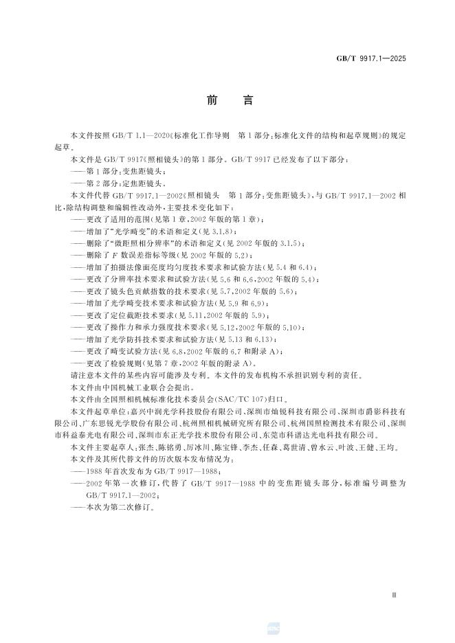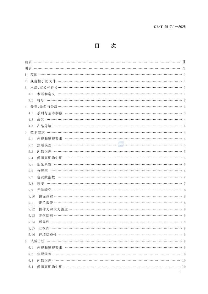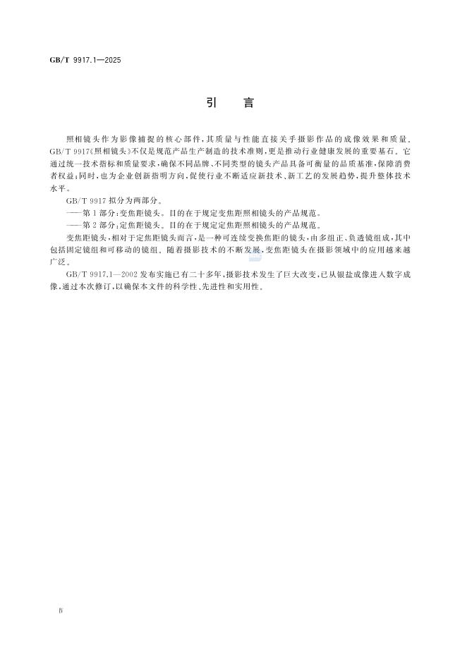 GB/T 9917.1-2025 照相镜头 第1部分:变焦距镜头