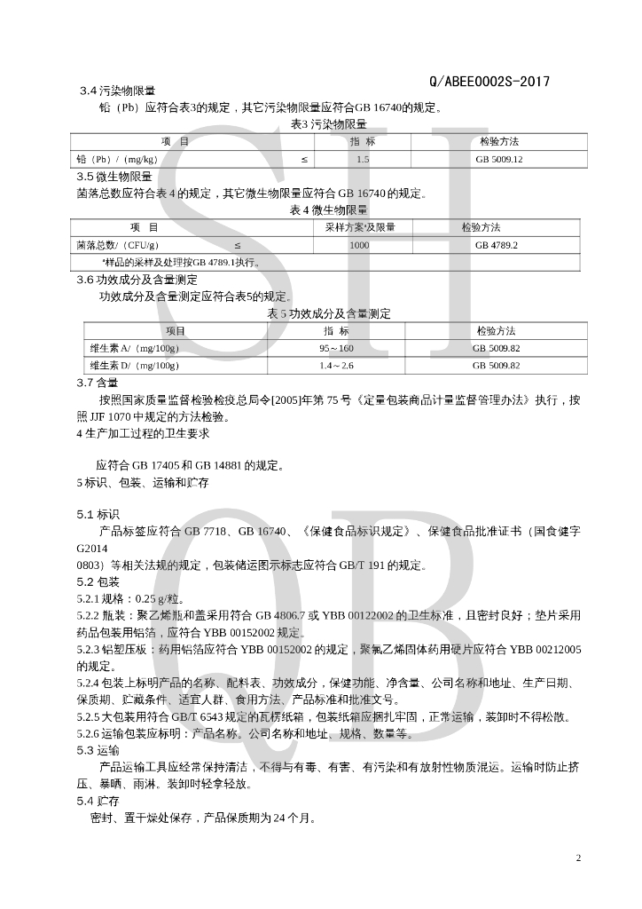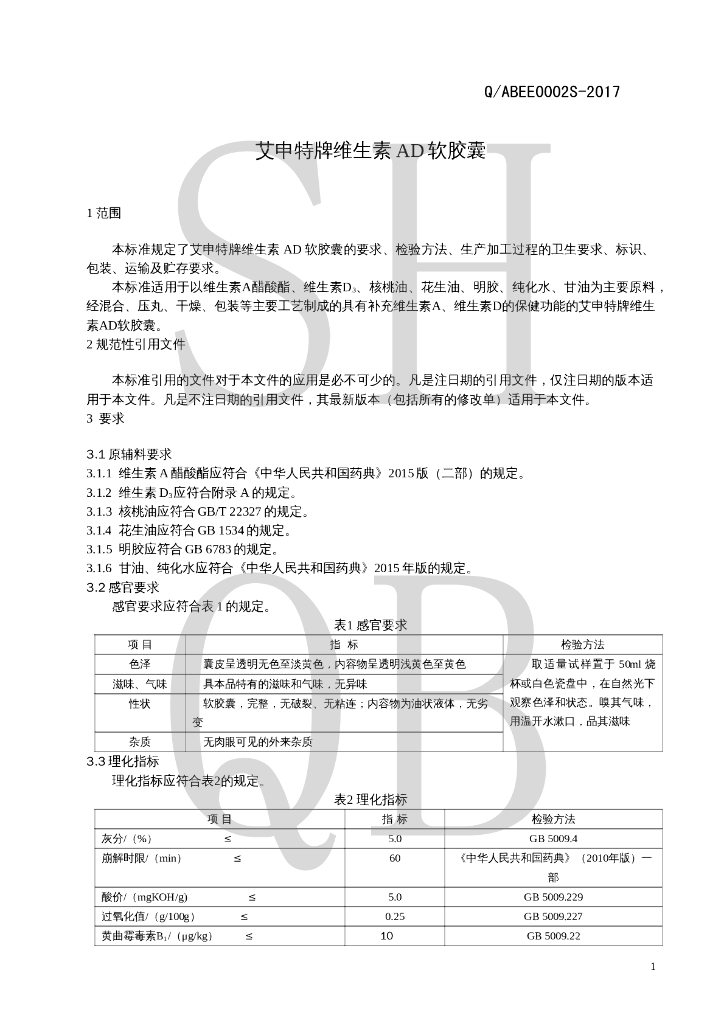Q/ABEE 0002S-2017 艾申特牌维生素AD软胶囊