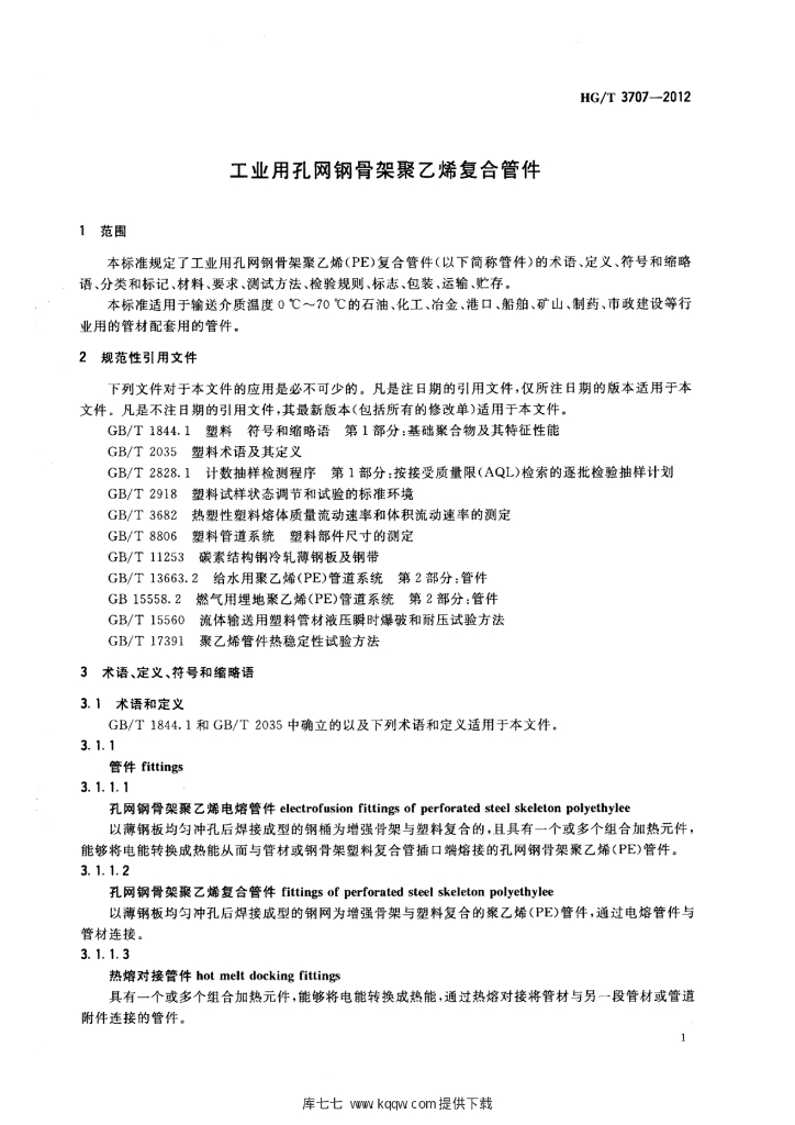 HG/T 3707-2012 工业用孔网钢骨架聚乙烯复合管件