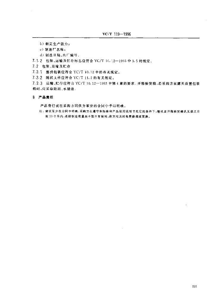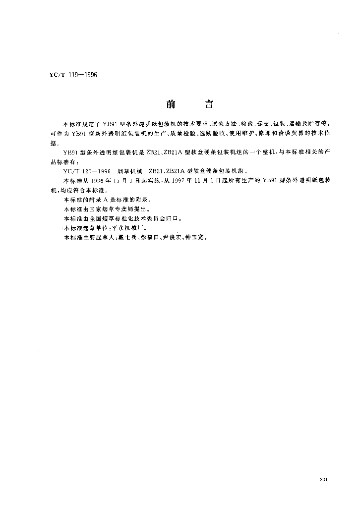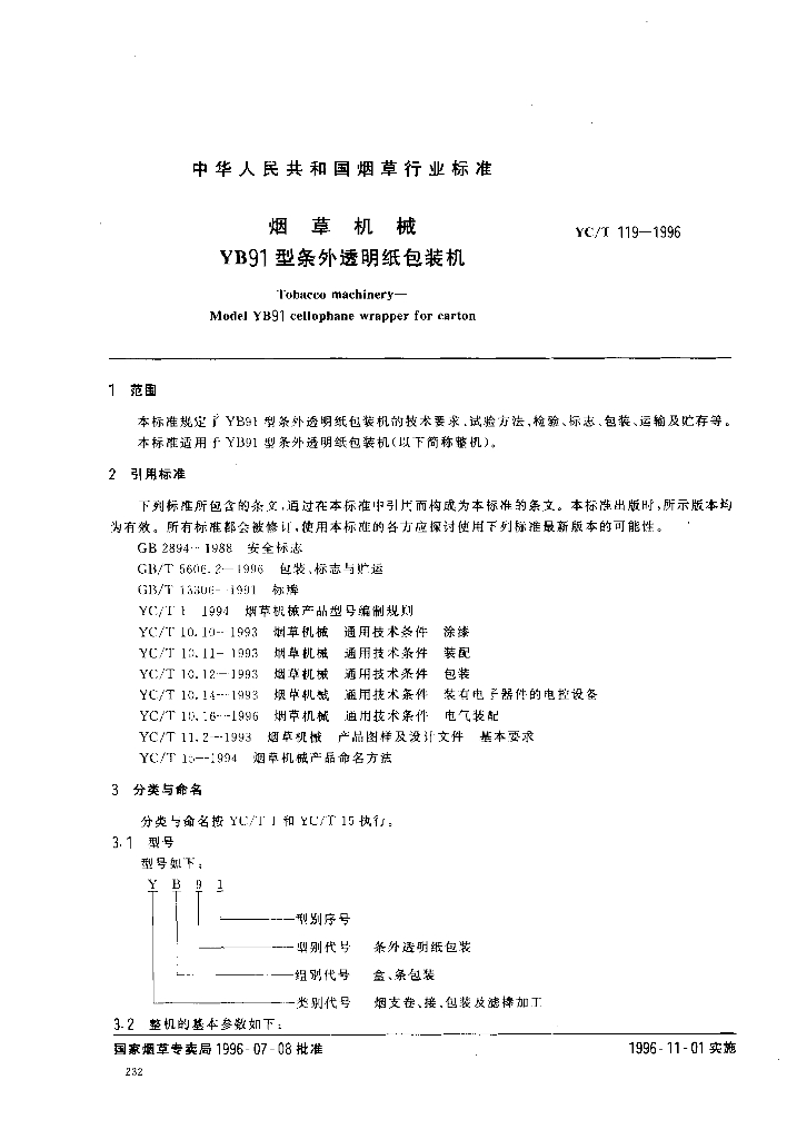 YC/T 119-1996 烟草机械 YB91型条外透明纸包装机
