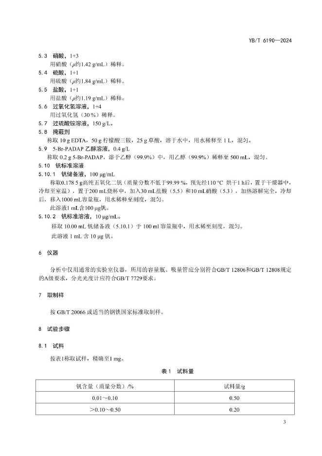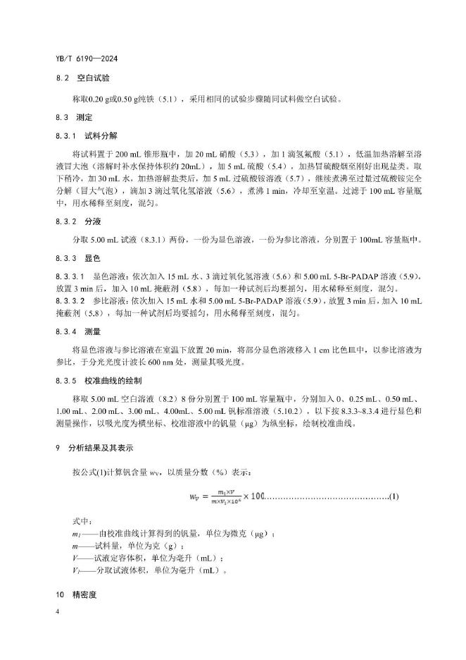 YB/T 6190-2024 钢铁及合金 钒含量的测定 5-Br-PADAP分光光度法