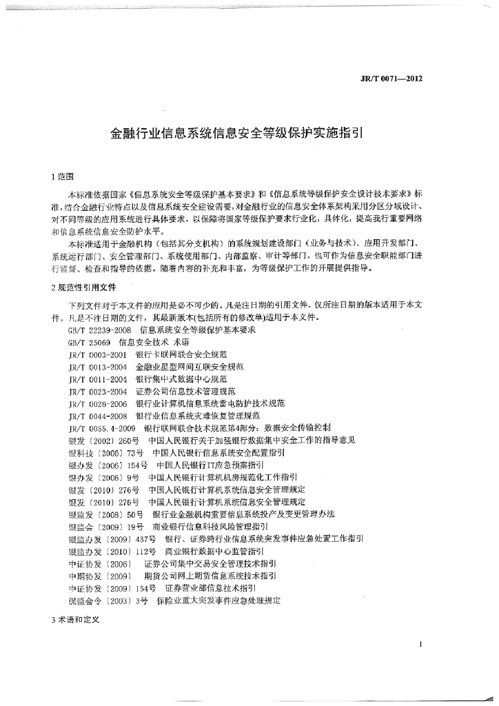 JR/T 0071-2012 金融行业信息系统信息安全等级保护实施指引