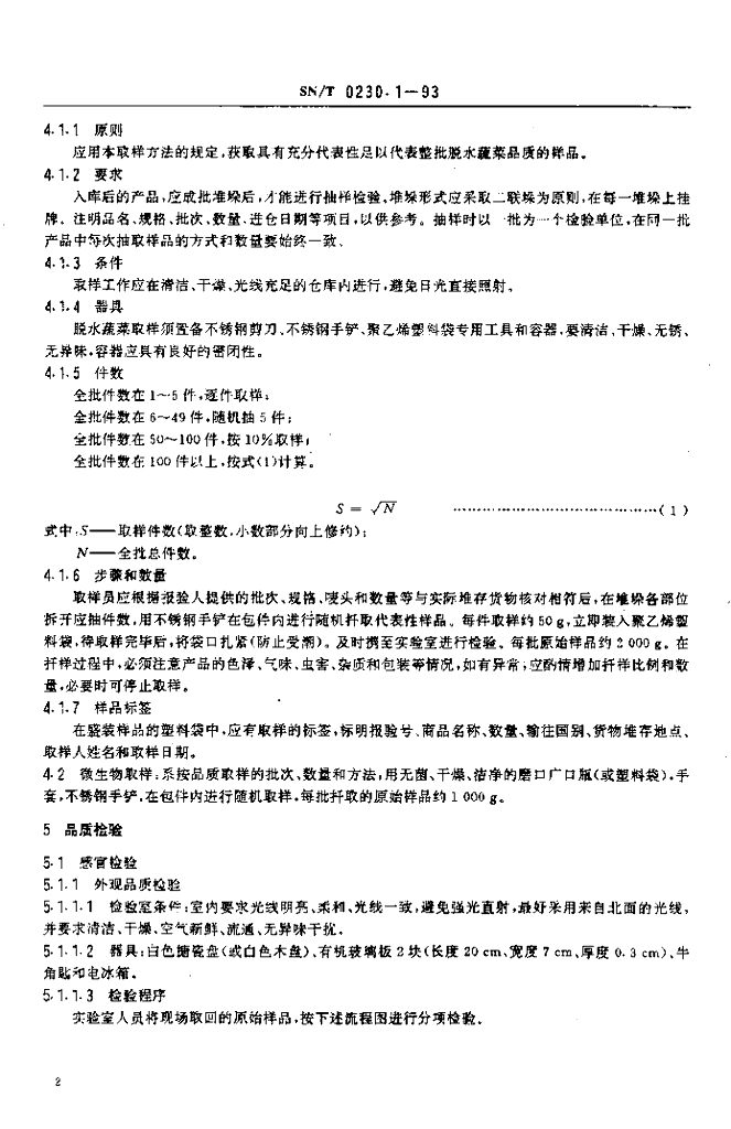 SN/T 0230.1-1993 出口脱水蔬菜检验规程