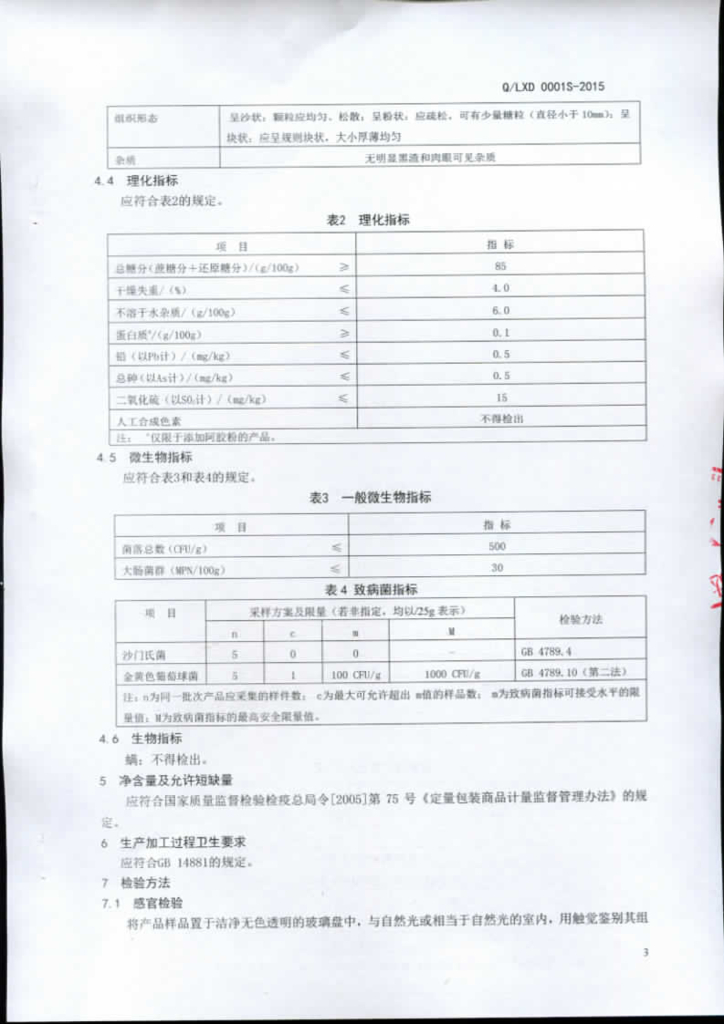 Q/LXD 0001S-2015 临沂市旭达食品有限公司 黑糖类食品(系列黑糖)
