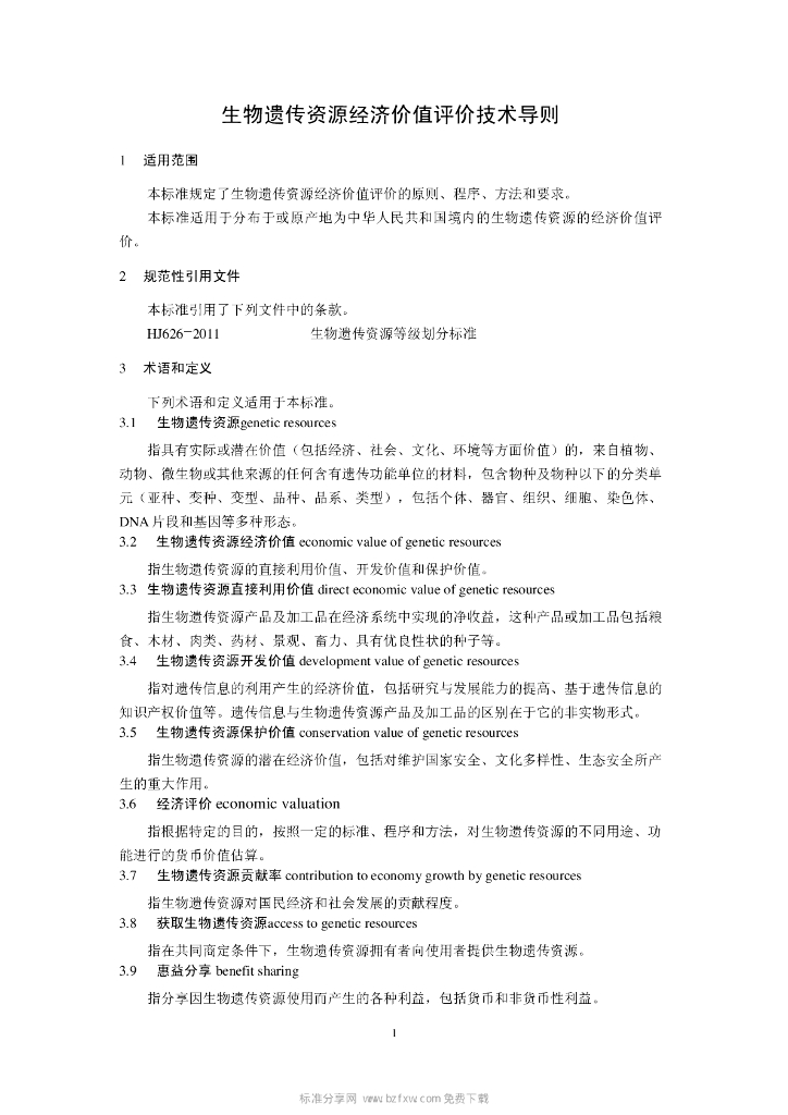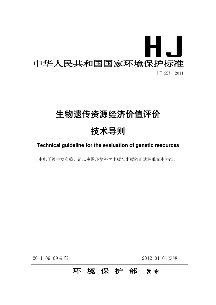HJ 627-2011 生物遗传资源经济价值评价技术导则