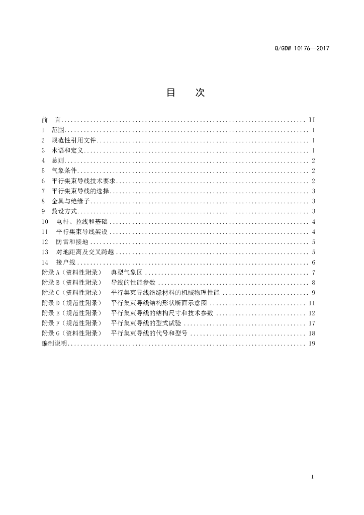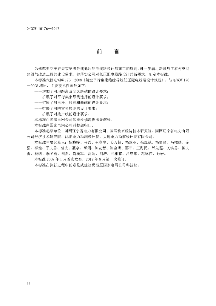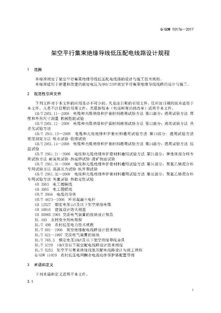 Q/GDW 10176-2017 架空平行集束绝缘导线低压配电线路设计规程