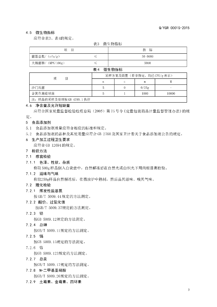 Q/YGR 0001S-2015 阳信广前清真肉类有限公司 速冻调理肉制品