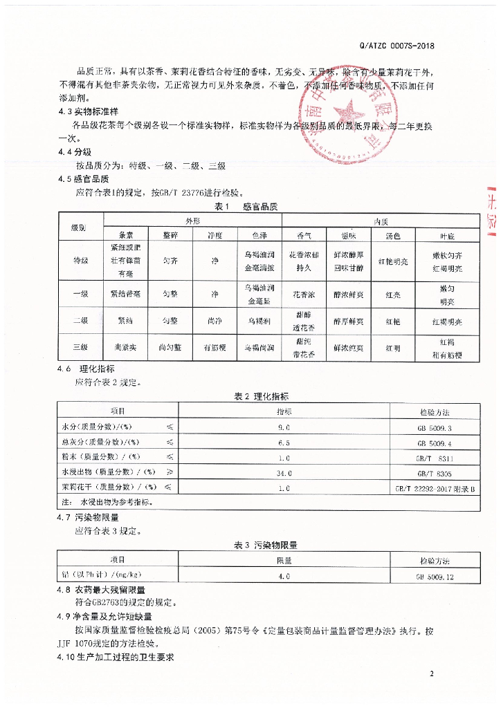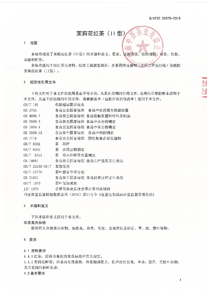 Q/ATZC 0007S-2018 茉莉花红茶(II型)