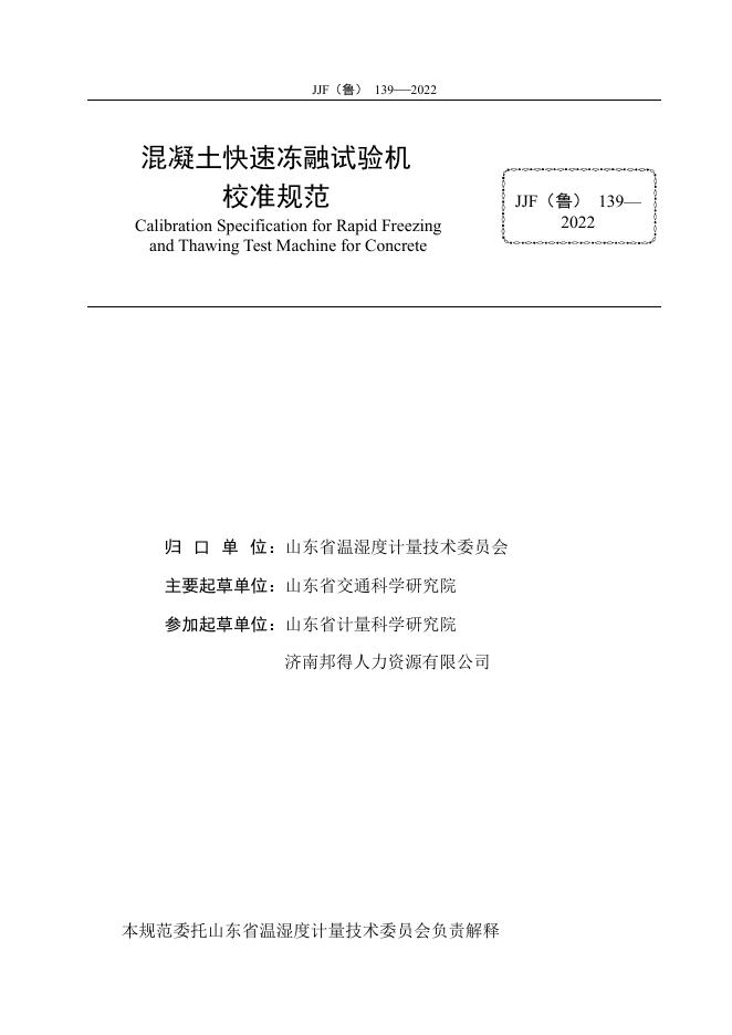 JJF(鲁)139-2022 混凝土快速冻融试验机校准规范