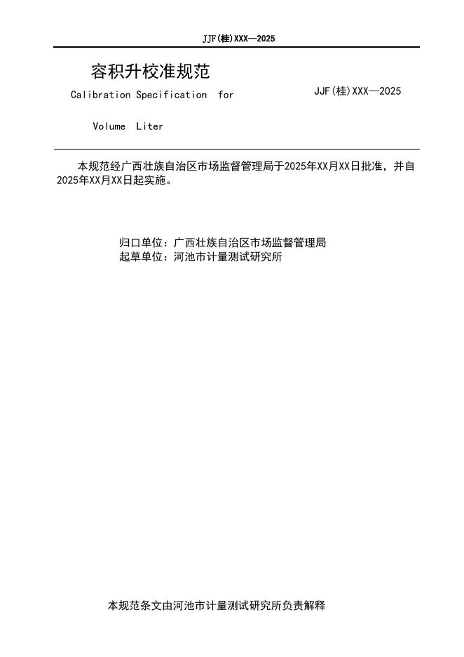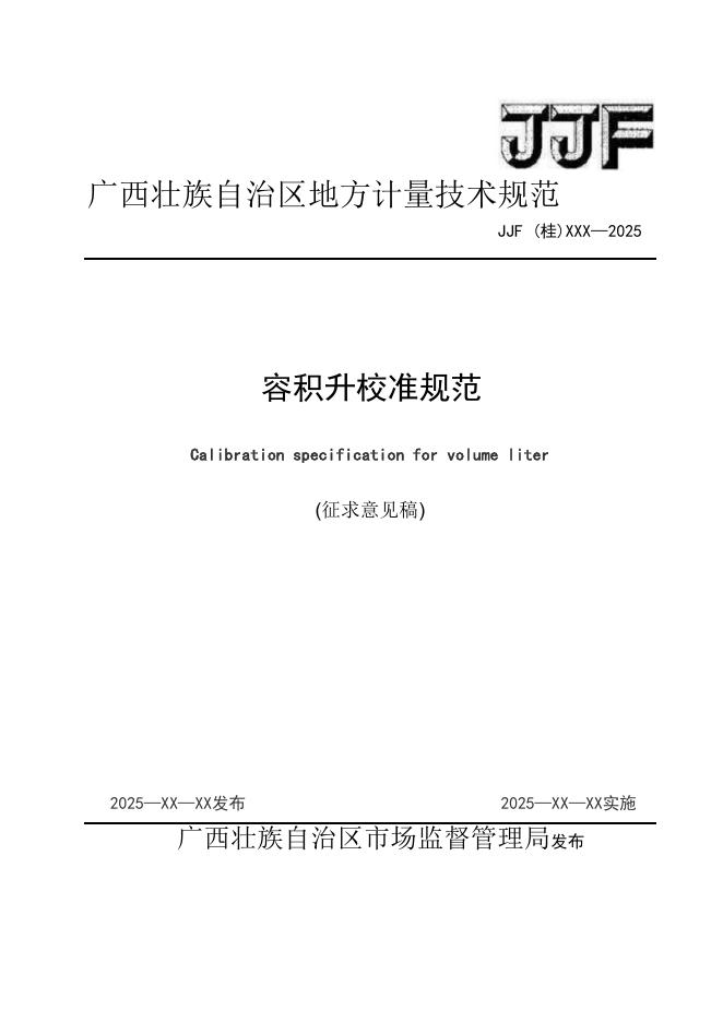 JJF(桂)XXX-2025 容积升校准规范(征求意见稿)