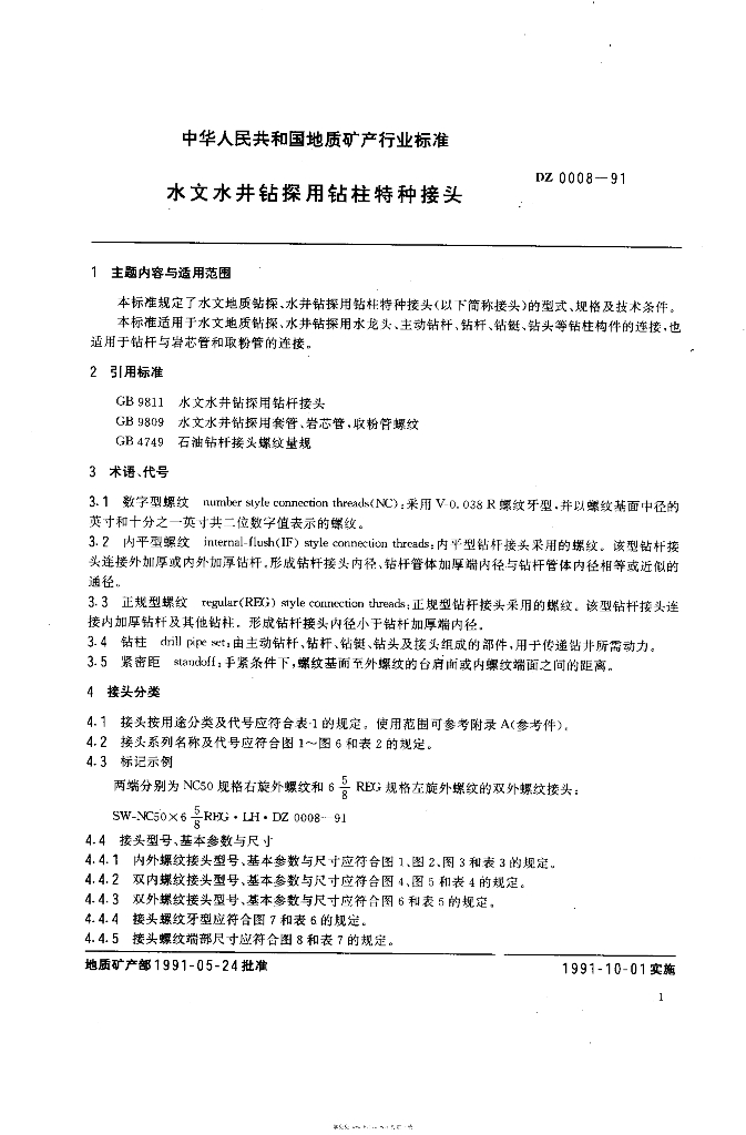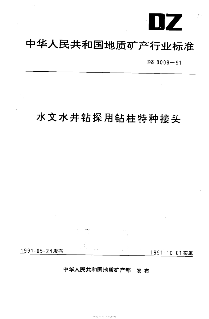 DZ 0008-1991 水文水井钻探用钻柱特种接头