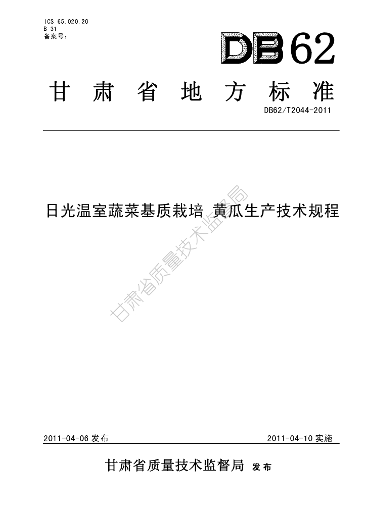 DB62/T 2044-2011 日光温室蔬菜基质栽培 黄瓜生产技术规程