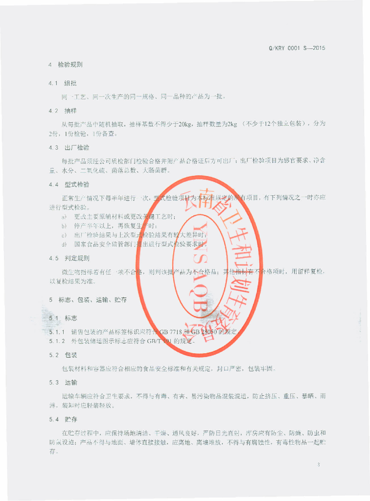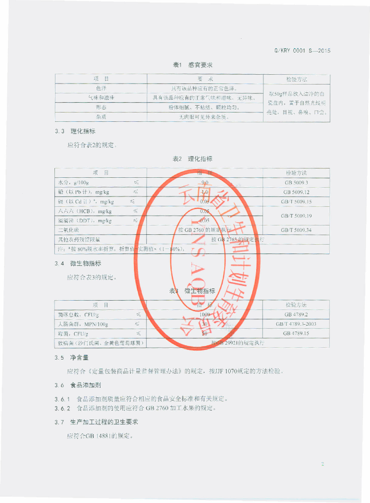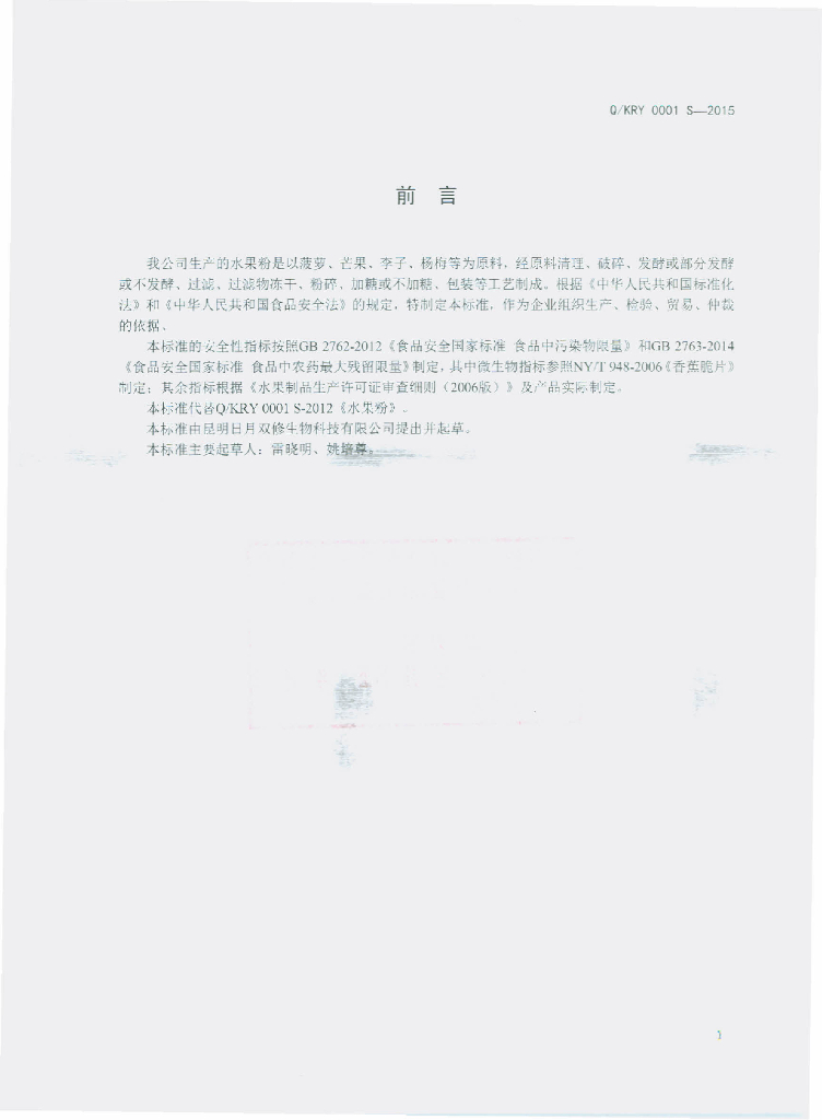 Q/KRY 0001S-2015 昆明日月双修生物科技有限公司 水果粉
