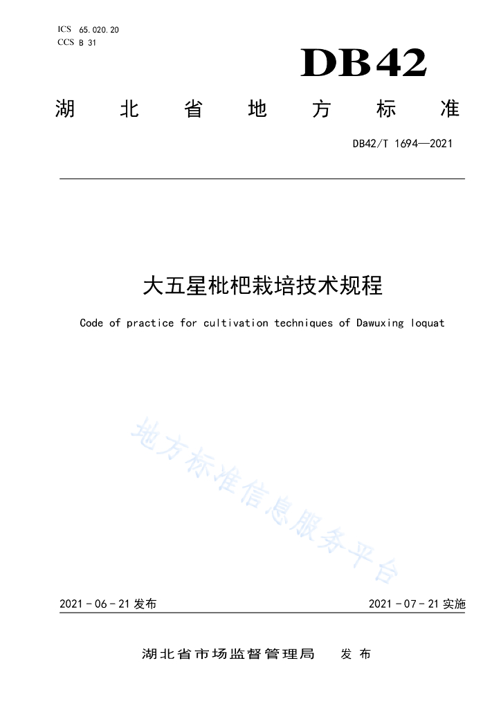 DB42/T 1694-2021 大五星枇杷栽培技术规程