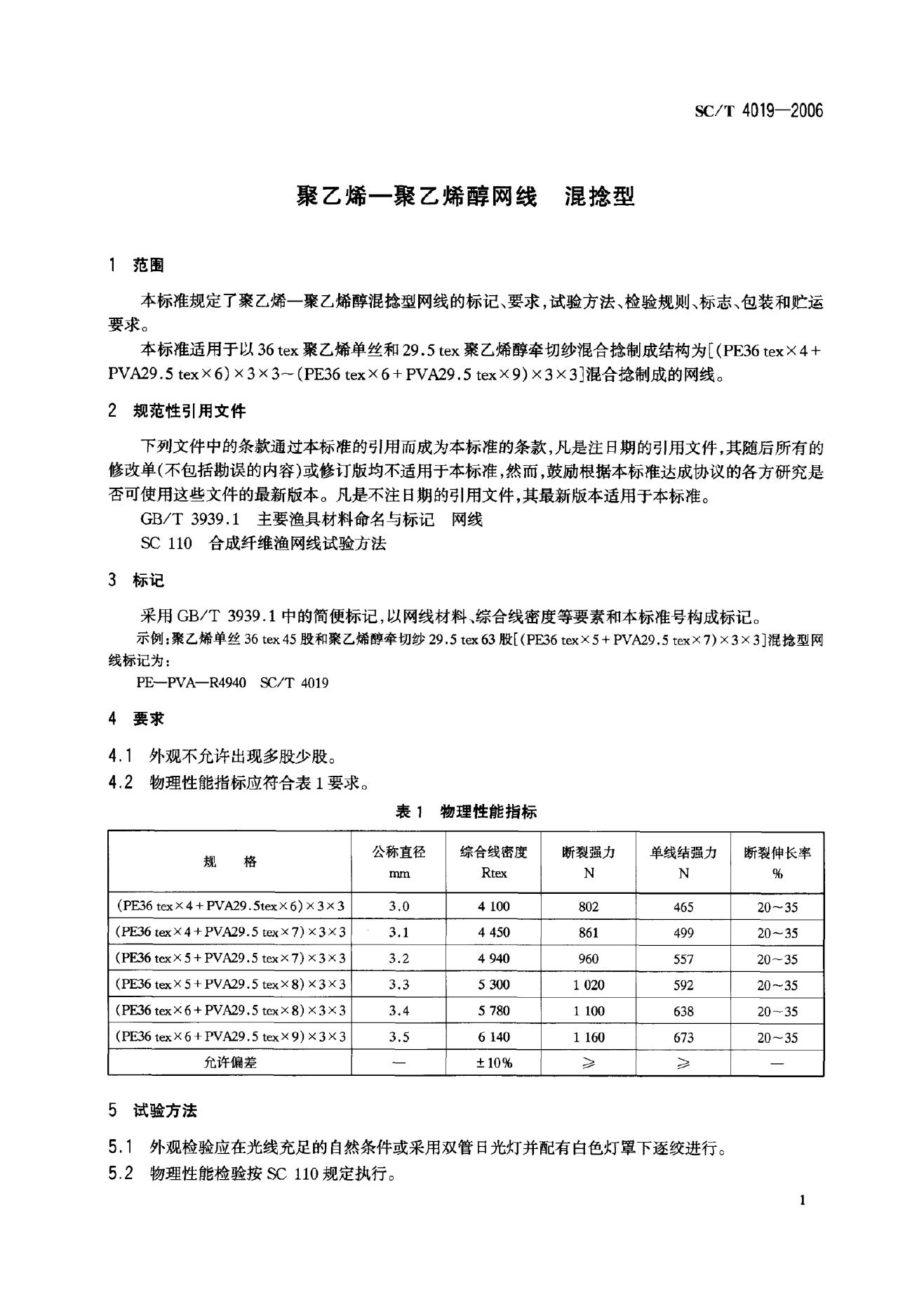 SC/T 4019-2006 聚乙烯——聚乙烯醇网线 混捻型