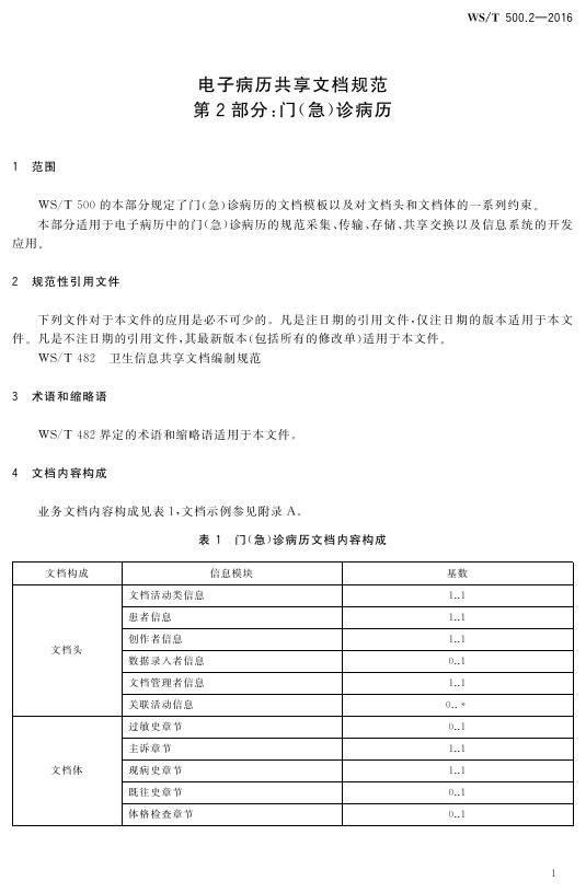 WS/T 500.2-2016 电子病历共享文档规范 第2部分:门(急)诊病历