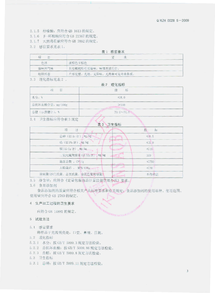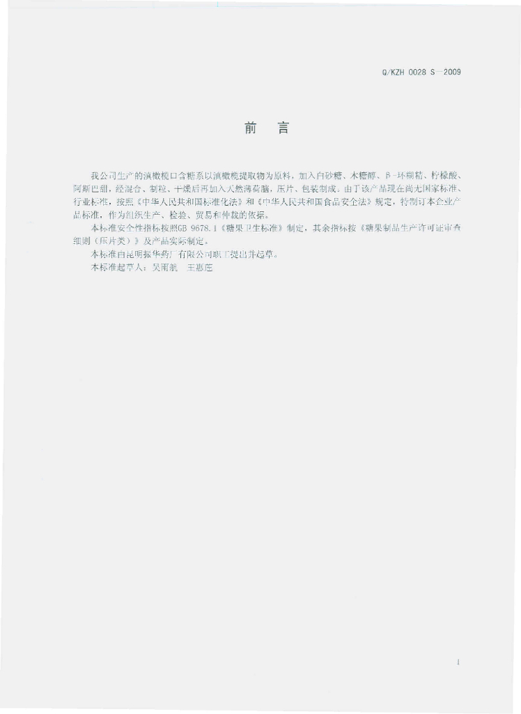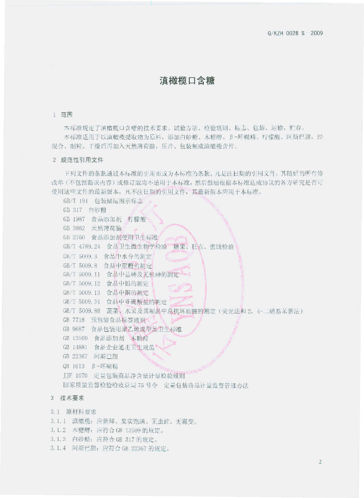 Q/KZH 0028S-2009 滇橄榄口含糖