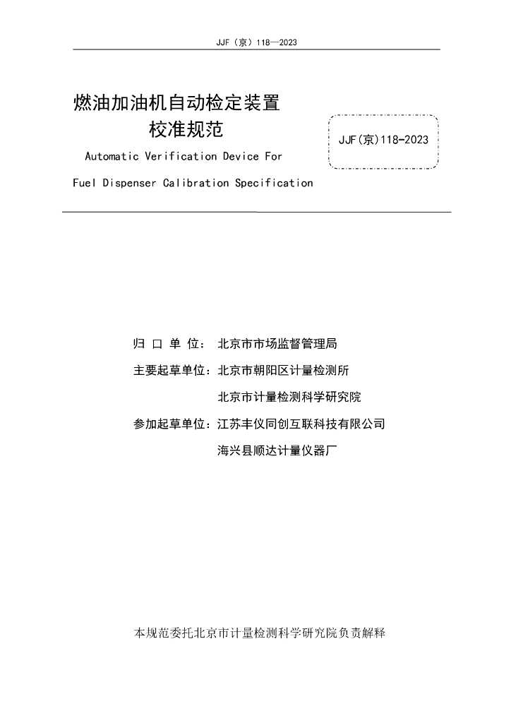 北京市朝阳区计量检测所、北京市计量检测科学研究院、江苏丰仪同创互联科技有限公司、海兴县顺达计量仪器厂