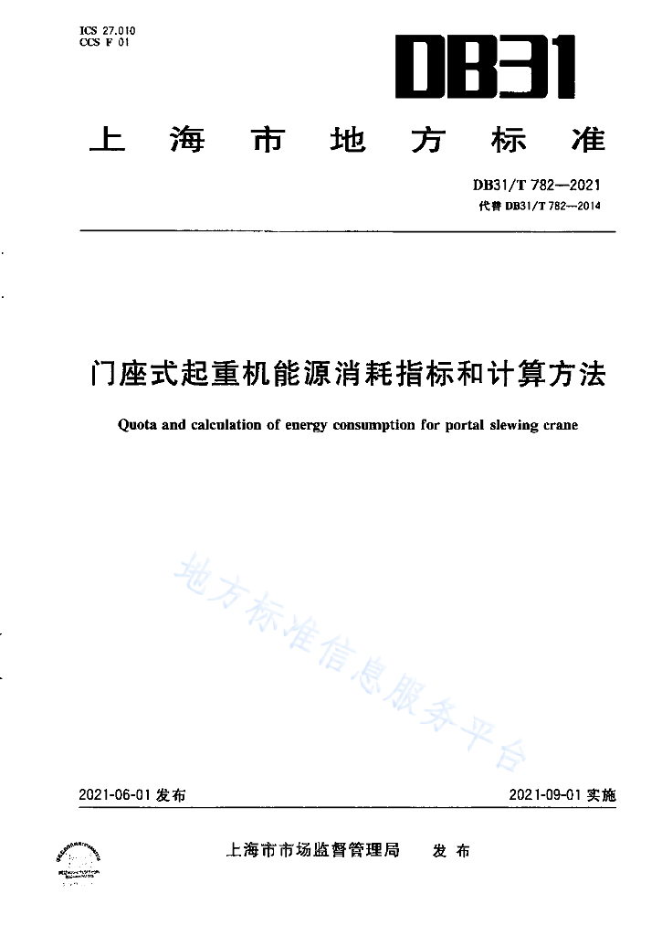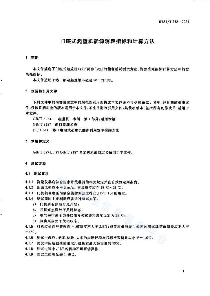 DB31/T 782-2021 门座式起重机能源消耗指标和计算方法