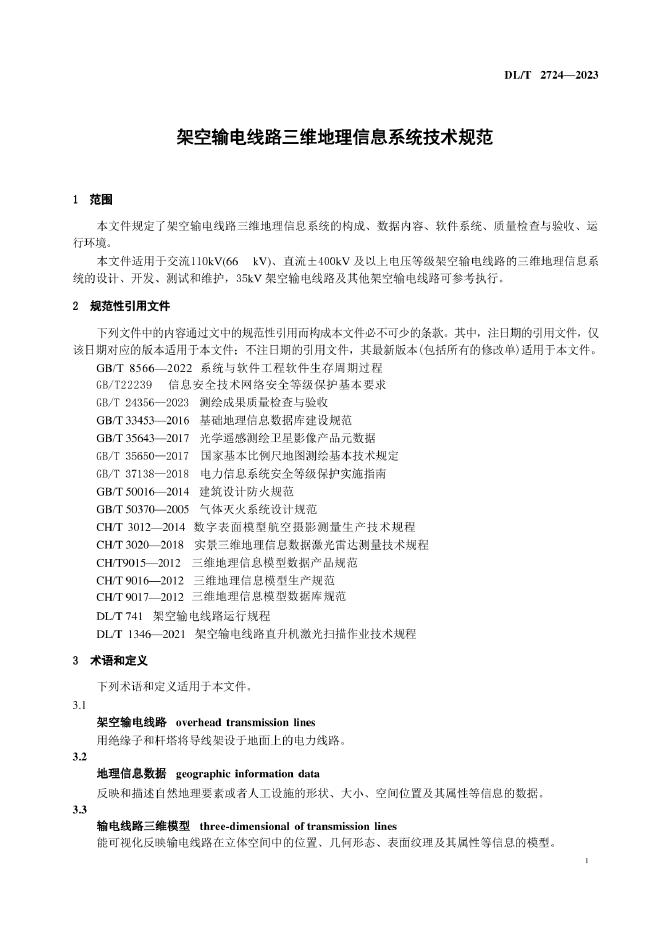 DL/T 2724-2023 架空输电线路三维地理信息系统技术规范