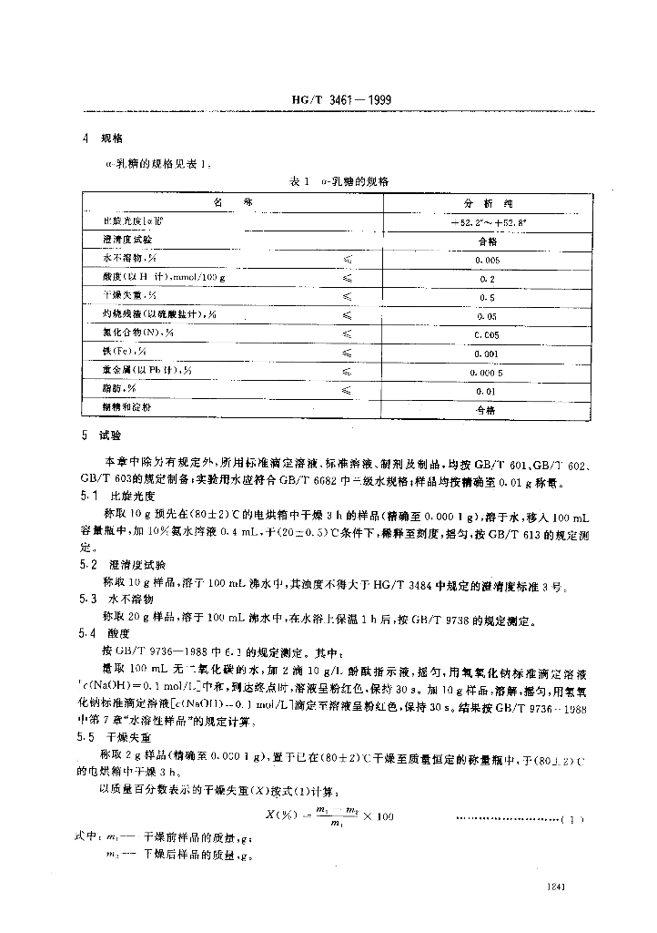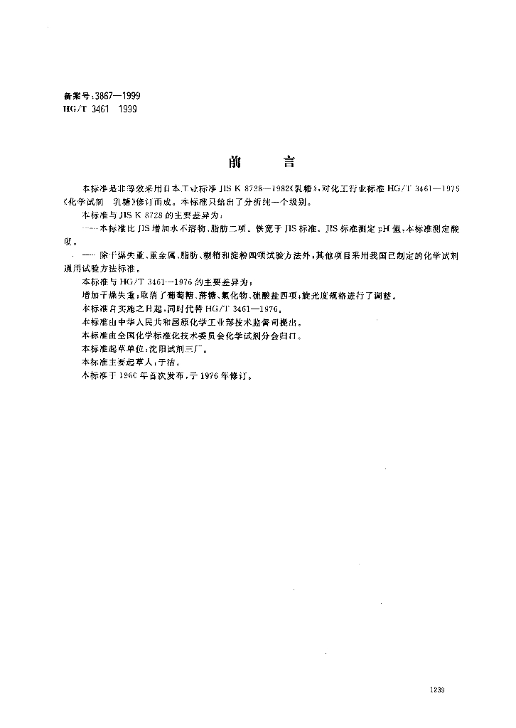 HG/T 3461-1999 化学试剂 a-乳糖