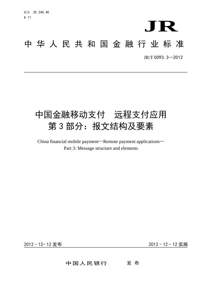 JR/T 0093.3-2012 中国金融移动支付 远程支付应用 第3部分:报文结构及要素