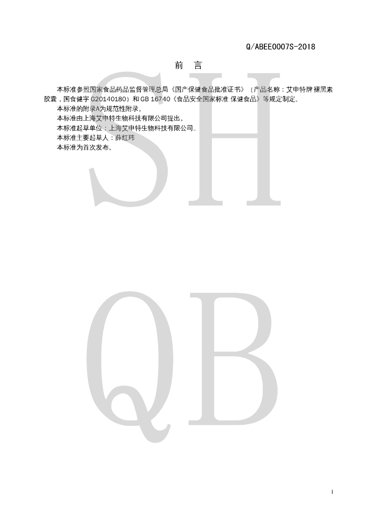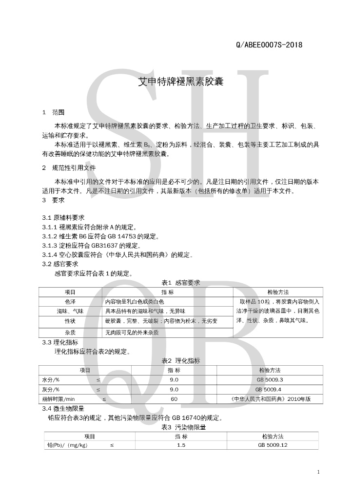 Q/ABEE 0007S-2018 艾申特牌褪黑素胶囊