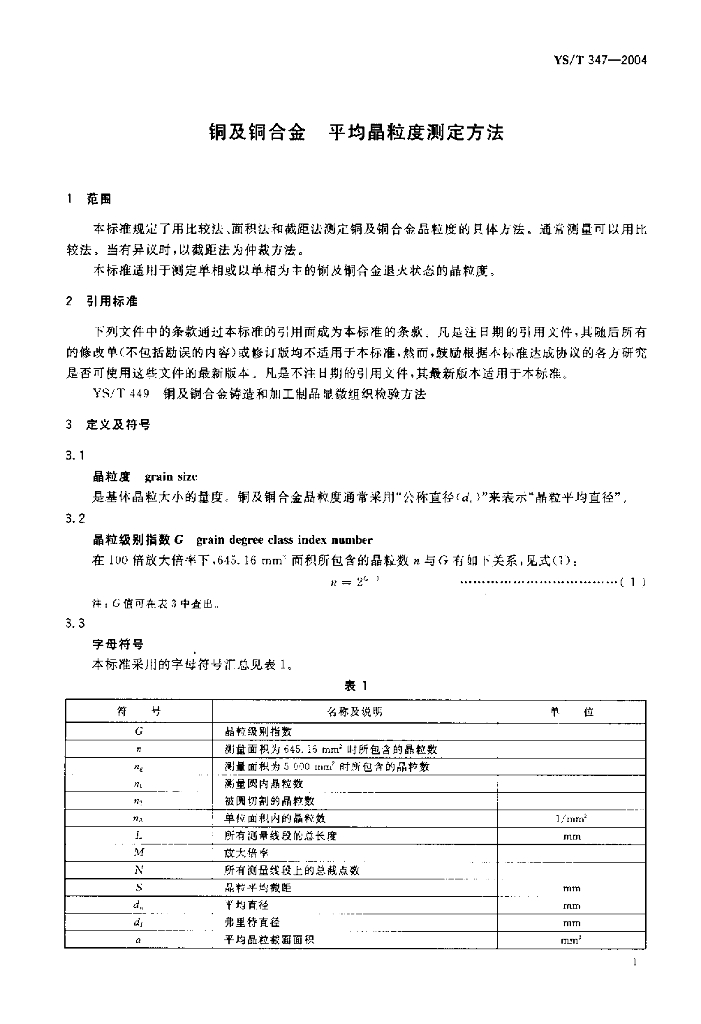 YS/T 347-2004 铜及铜合金平均晶粒度测定方法