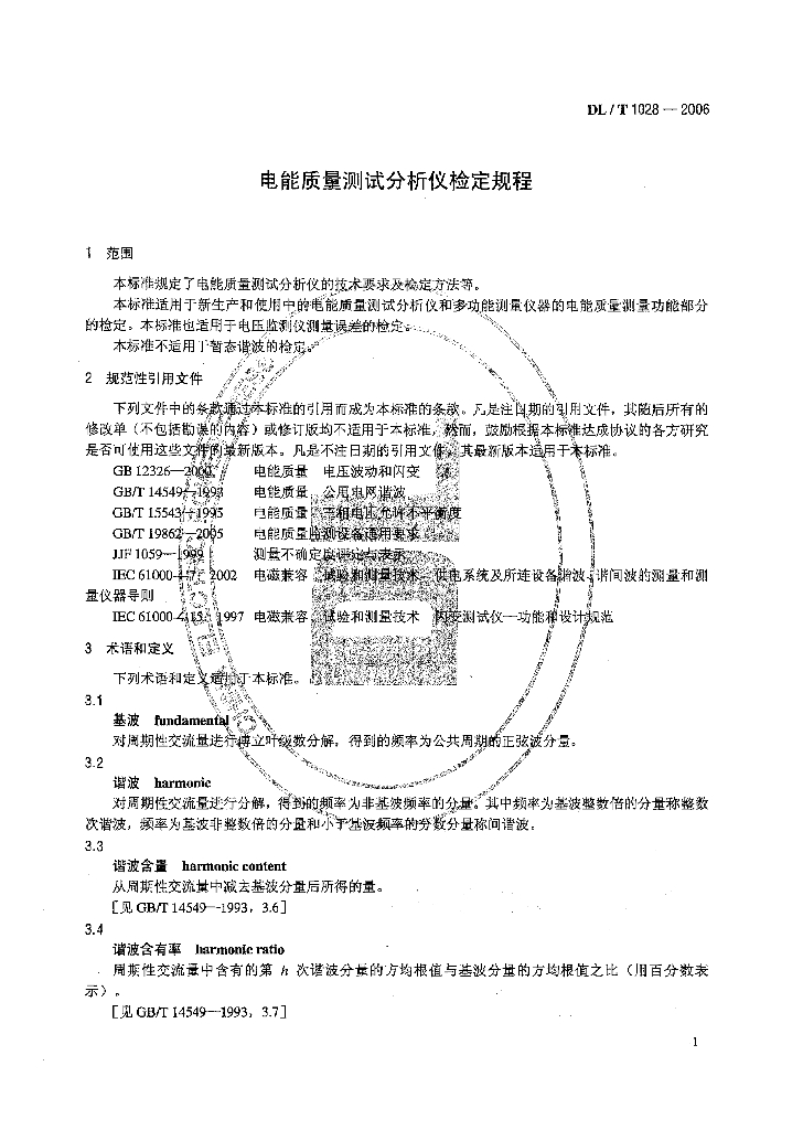DL/T 1028-2006 电能质量测试分析仪检定规程