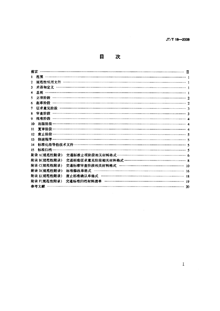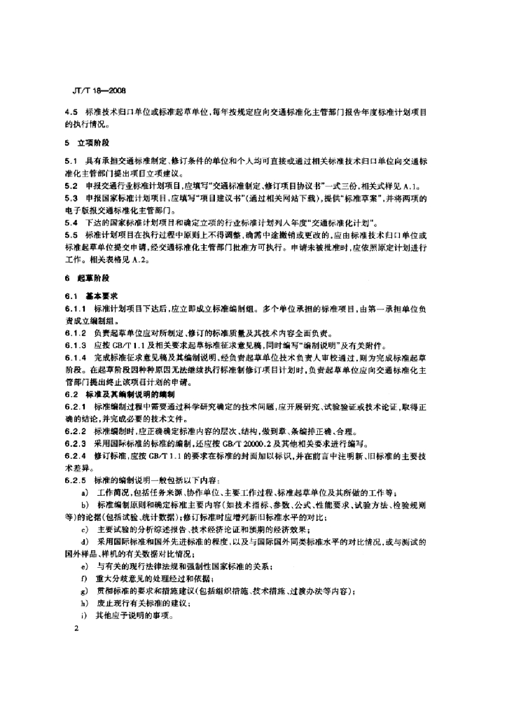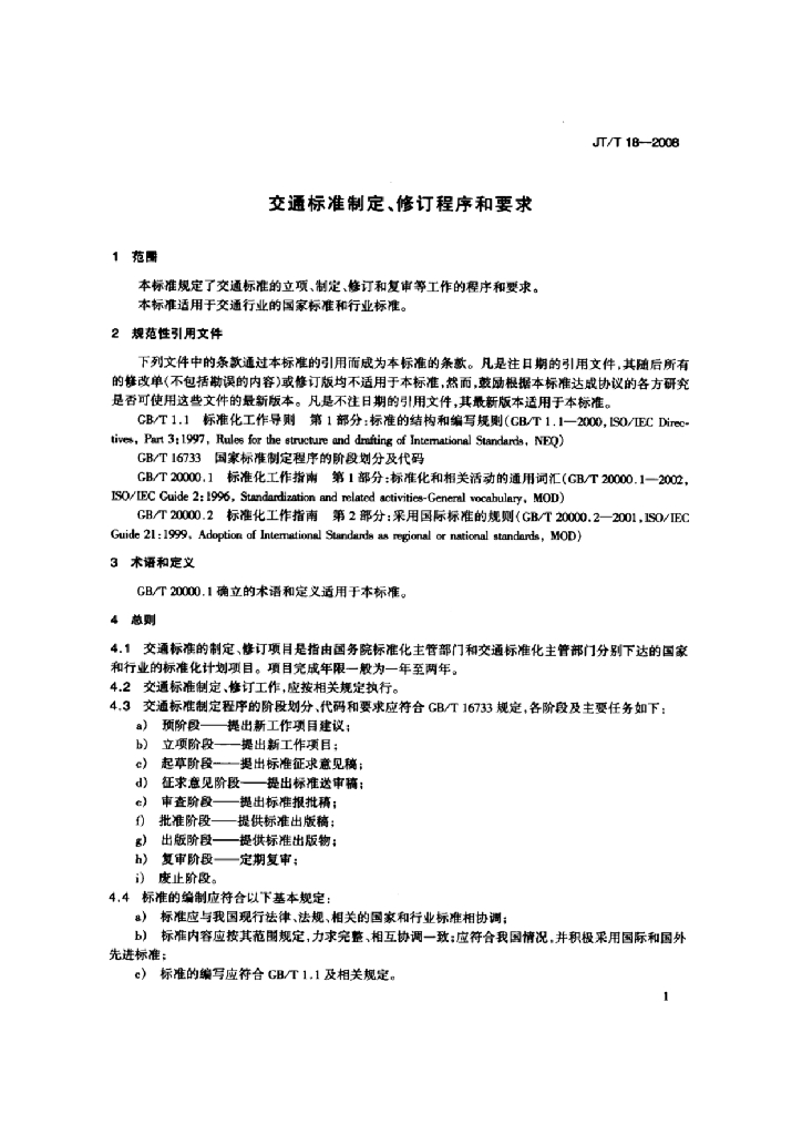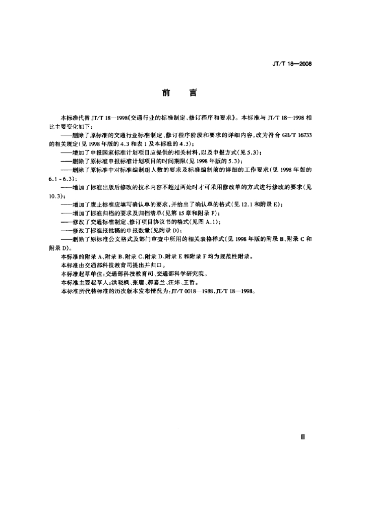 JT/T 18-2008 交通标准制定、修订程序和要求
