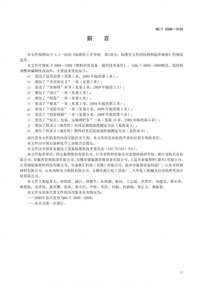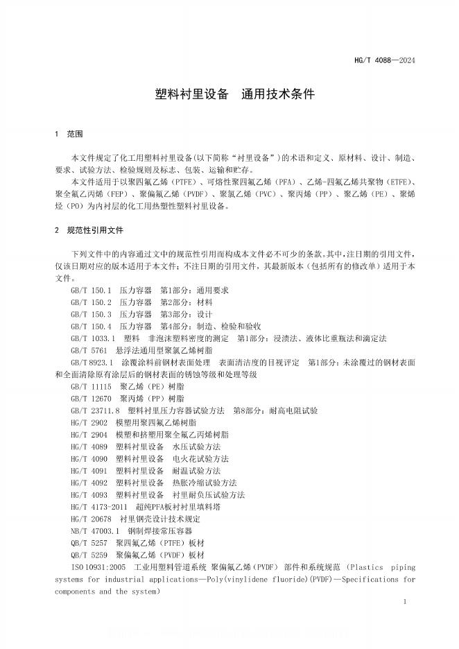 HG/T 4088-2024 塑料衬里设备 通用技术条件