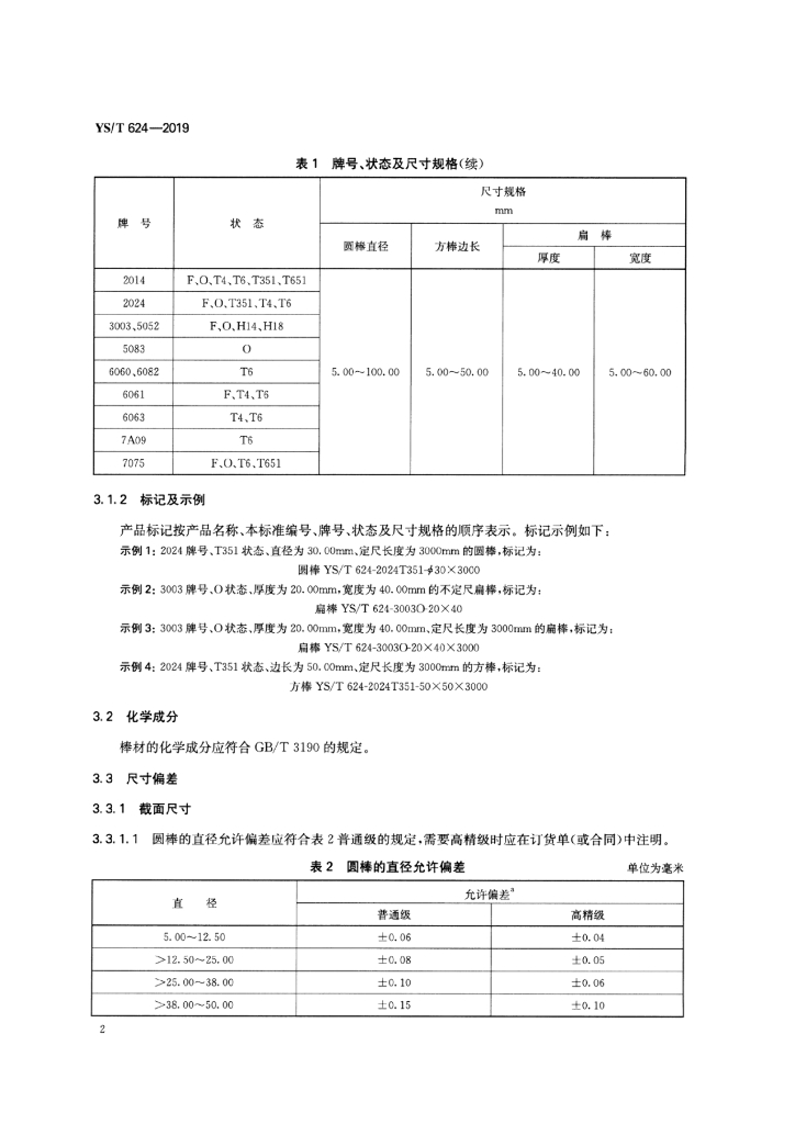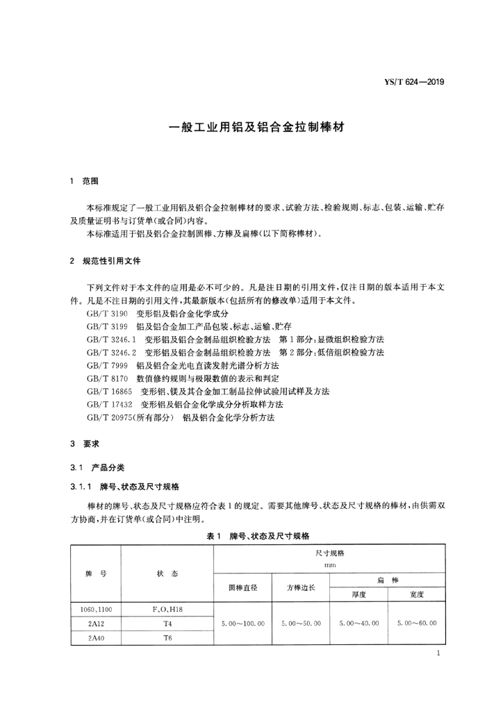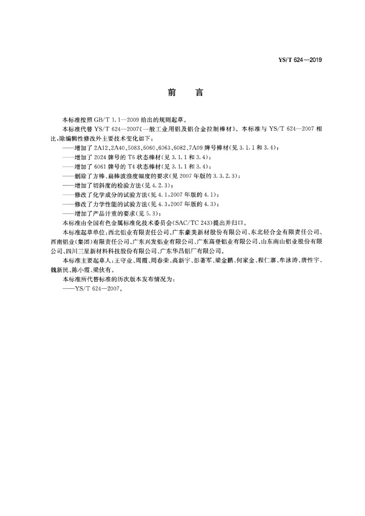 YS/T 624-2019 一般工业用铝及铝合金拉制棒材