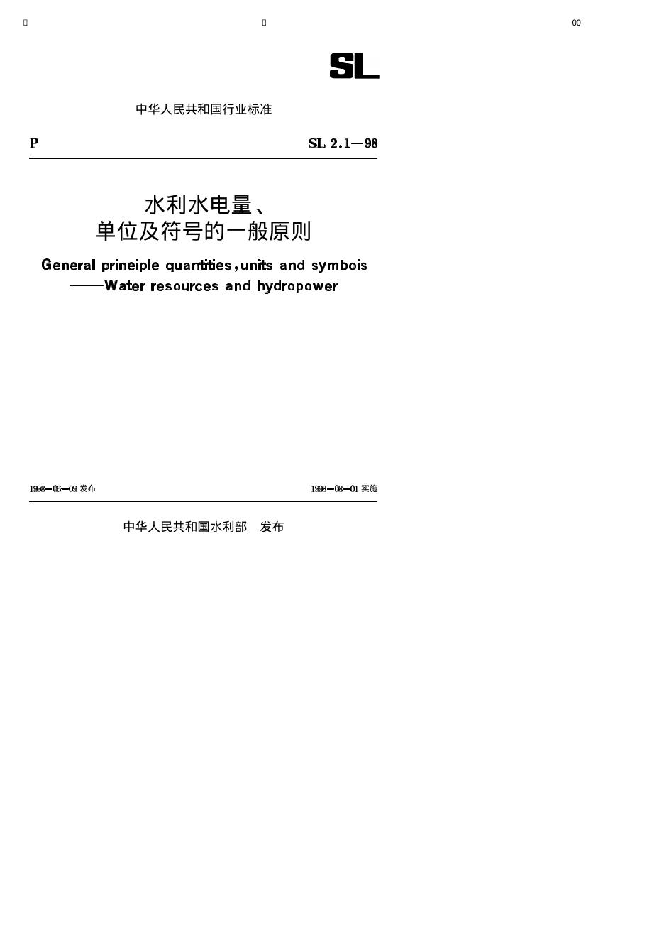 SL 2.1-1998 水利水电量、单位及符号的一般原则
