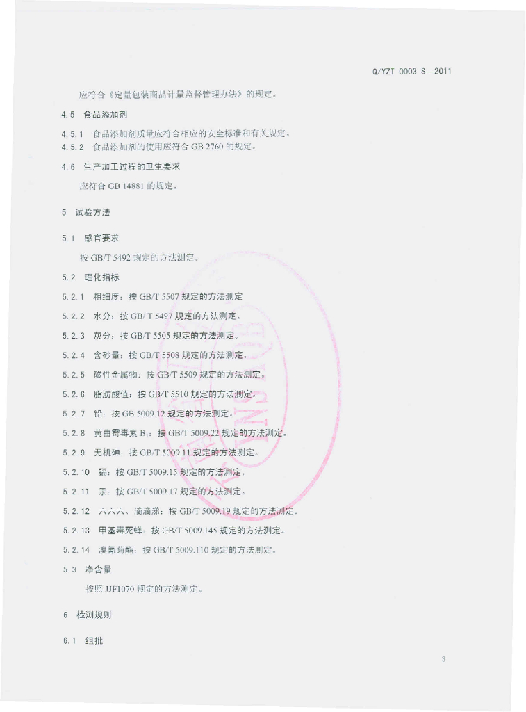 Q/YZT 0003S-2011 苦荞粉、苦荞皮层粉