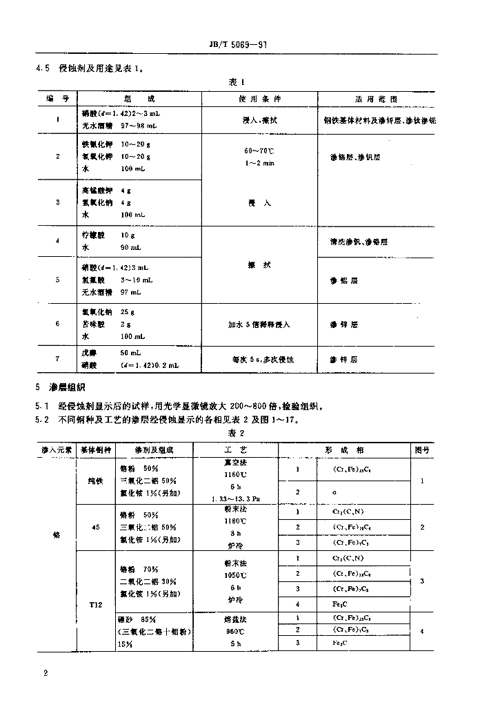 JB/T 5069-1991 钢铁零件渗金属层金相检验方法