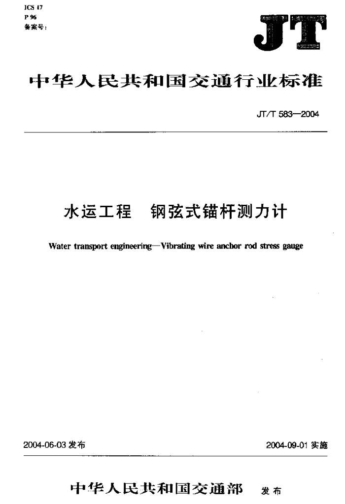JT/T 583-2004 水运工程 钢弦式锚杆测力计