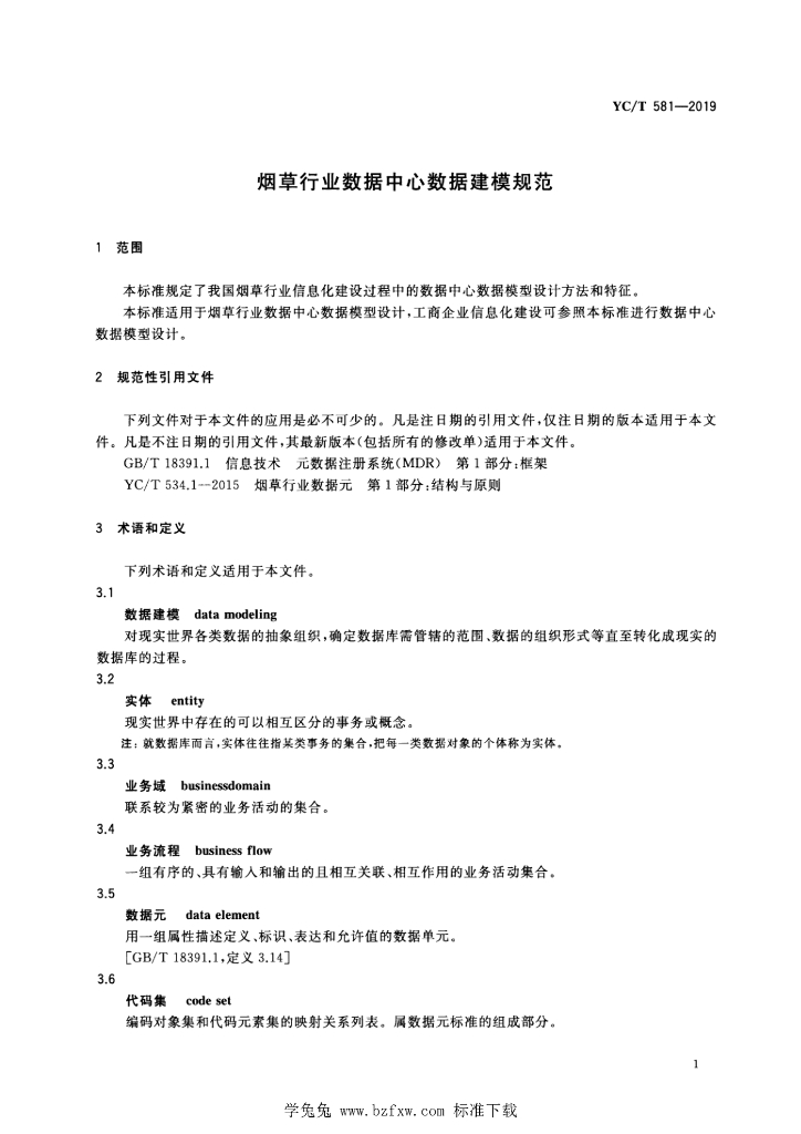 YC/T 581-2019 烟草行业数据中心数据建模规范