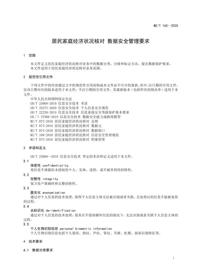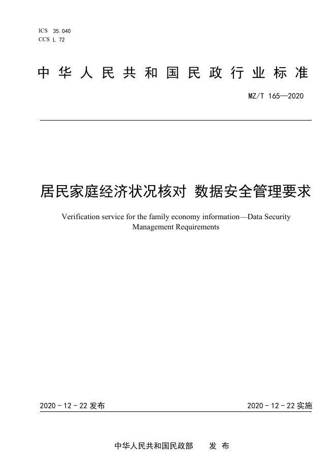MZ/T 165-2020 居民家庭经济状况核对 数据安全管理要求
