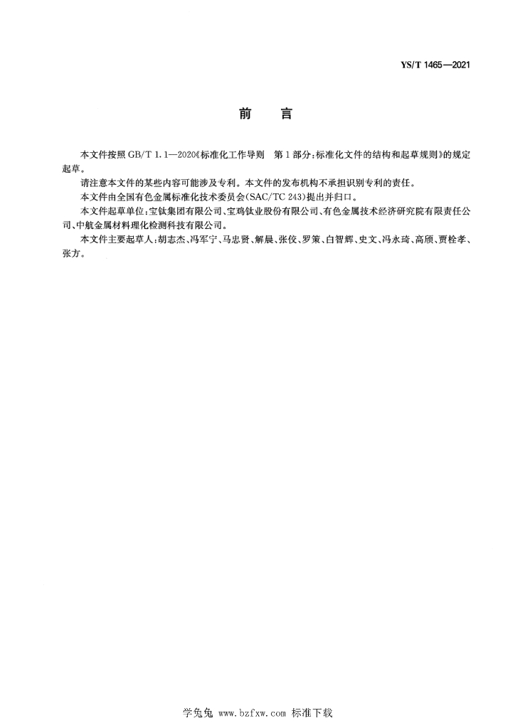 宝钛集团有限公司、宝鸡钛业股份有限公司、有色金属技术经济研究院有限责任公司、中航金属材料理化检测科技有限公司