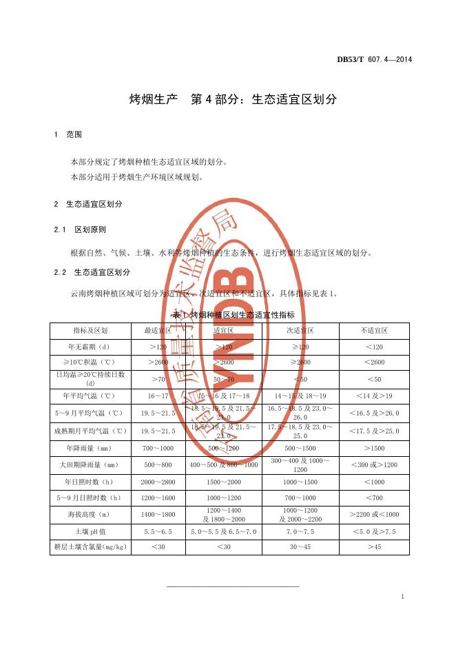 DB53/T 607.4-2014 烤烟生产 第4部分:生态适宜区划分