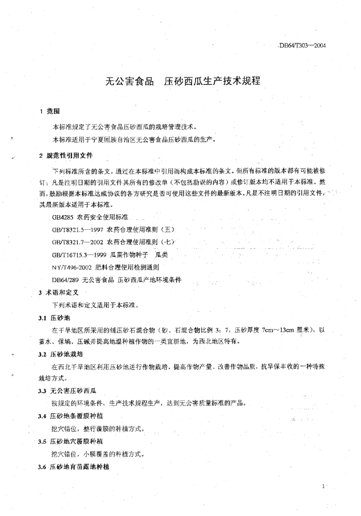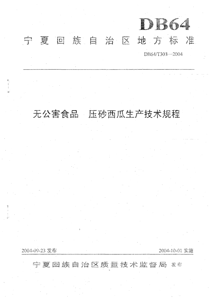 DB64/T 303-2004 无公害食品 压砂西瓜生产技术规程