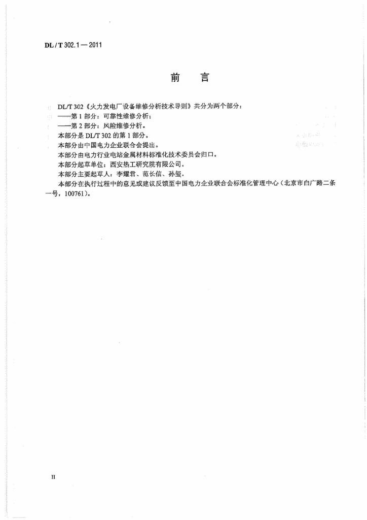 DL/T 302.1-2011 火力发电厂设备维修分析技术导则 第1部分:可靠性维修分析