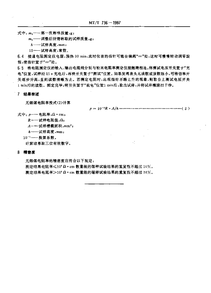 MT/T 736-1997 无烟煤电阻率测定方法